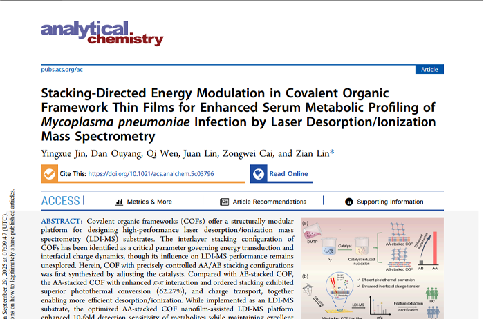 Stacking-Directed Energy Modulation in Covalent Organic Framework Thin Films for Enhanced Serum Metabolic Pro?ling of Mycoplasma pneumoniae Infection by Laser Desorption/Ionization Mass Spectrometry