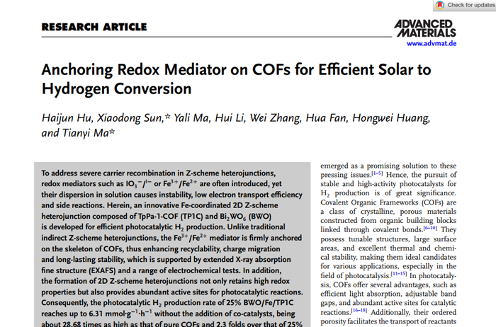 Anchoring Redox Mediator on COFs for E?cient Solar to Hydrogen Conversion