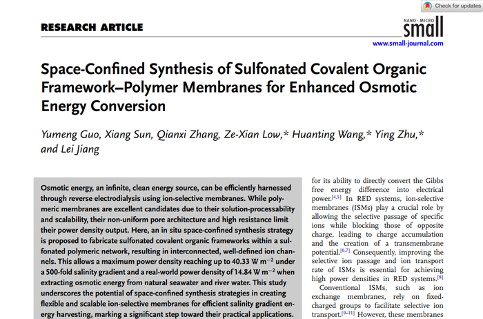 Space-Con?ned Synthesis of Sulfonated Covalent Organic Framework?Polymer Membranes for Enhanced Osmotic Energy Conversion