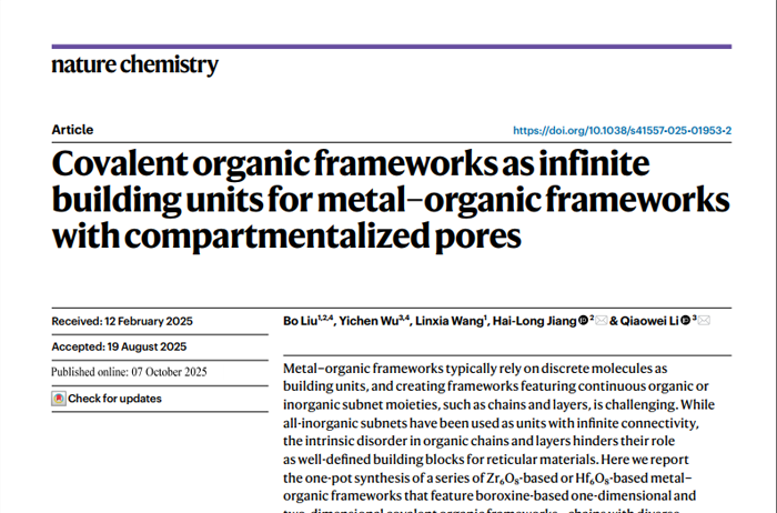 Covalent organic frameworks as infinitebuilding units for metal–organic frameworkswith compartmentalized pores