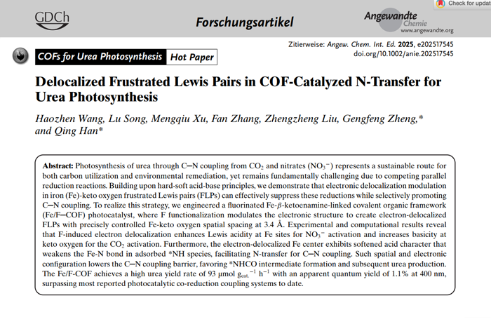 Delocalized Frustrated Lewis Pairs in COF-Catalyzed N-Transfer for Urea Photosynthesis