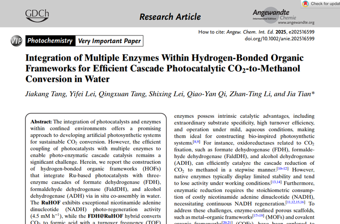 Integration of Multiple Enzymes Within Hydrogen-Bonded Organic Frameworks for Ef?cient Cascade Photocatalytic CO2-to-Methanol Conversionin Water