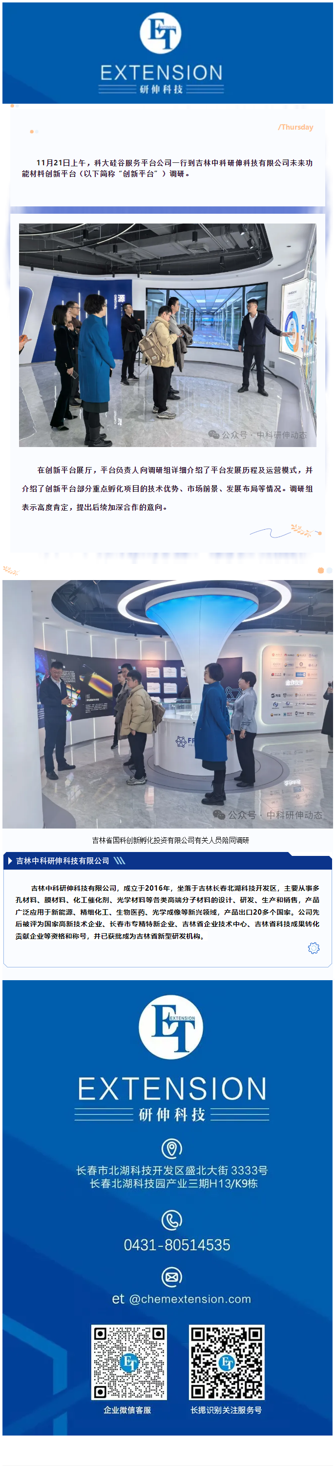 科大硅谷服務(wù)平臺公司一行調(diào)研中科研伸未來功能材料創(chuàng)新平臺
